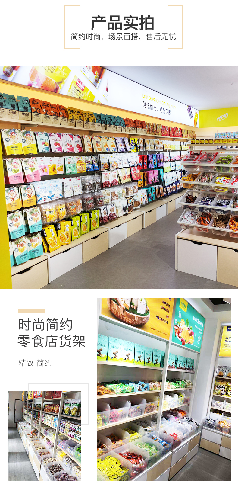 產品描述:時尚鋼木零食架,給顧客帶來輕奢購物體驗,工廠直銷,質量保證。