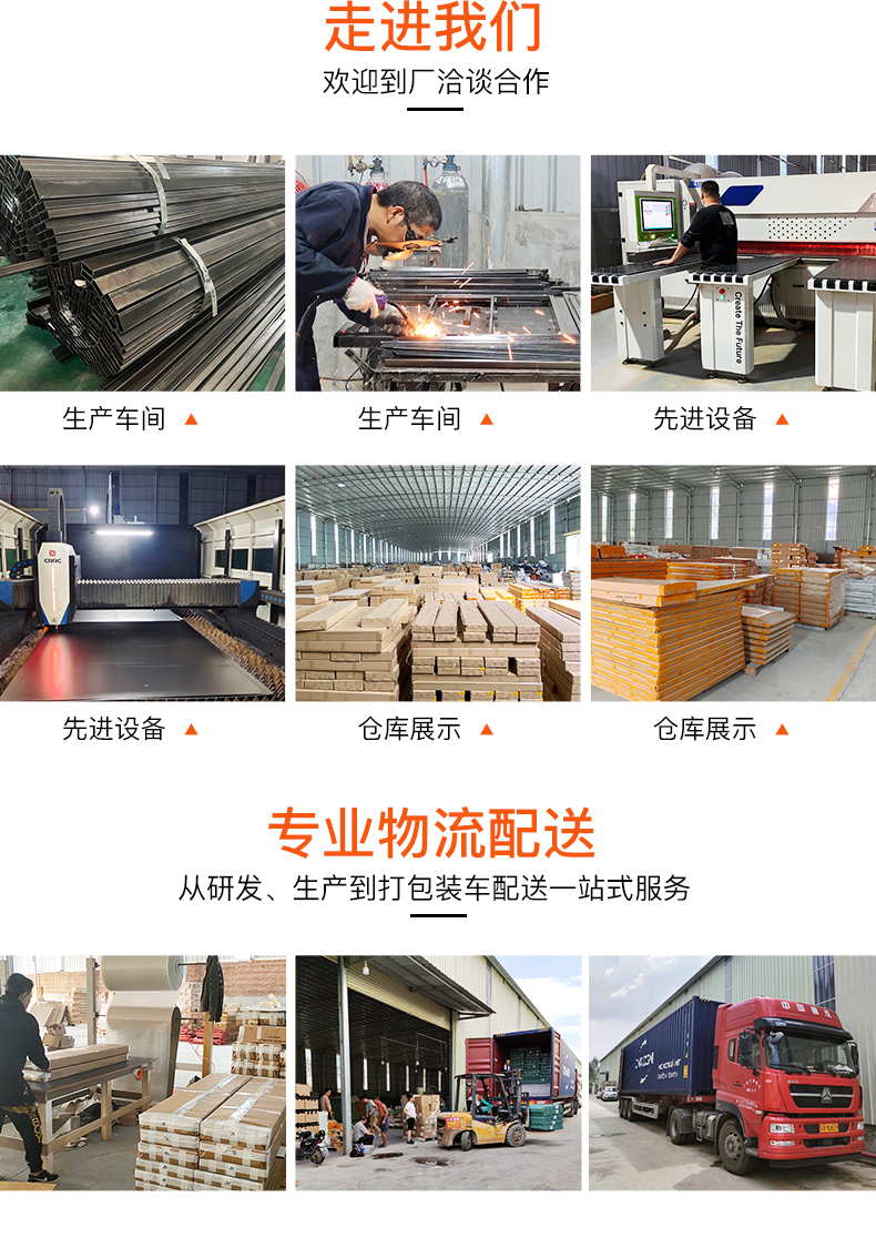 設有五金車間、木工車間、有機車間、烤漆車間、配送中心等工藝產業鏈,引進先進的數控開料機、自動封邊機、沖床、折彎機、剪床、大功率激光切割機等生產設備