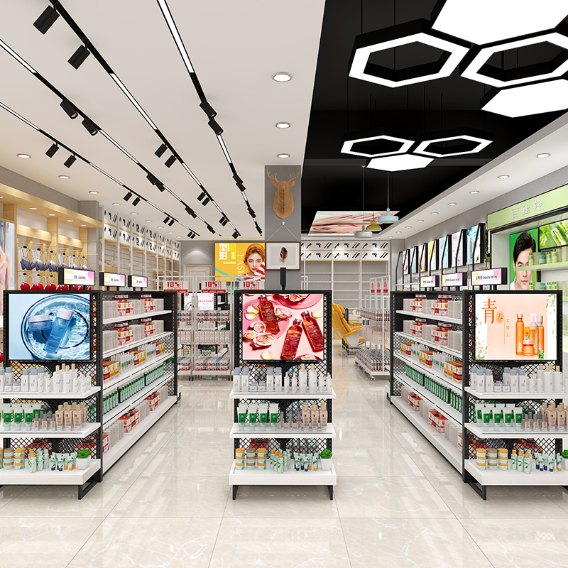 山西精品美妝店貨架化妝品展示架品牌專柜彩妝面膜護膚多層置物架貨架