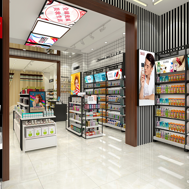 西安美妝店貨架精品現代護膚陳列柜商場彩妝專柜面膜展示柜雙面貨架子