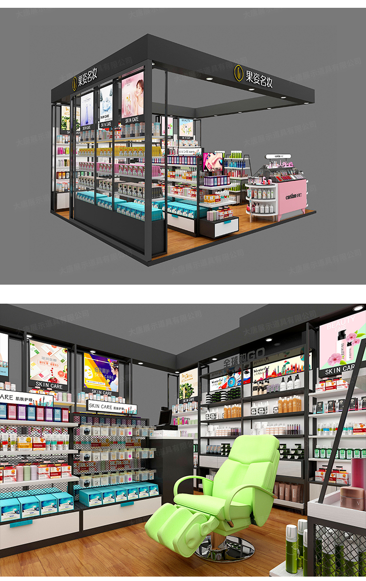 -> 精品化妝品陳列柜連鎖美妝店貨架商場展示架