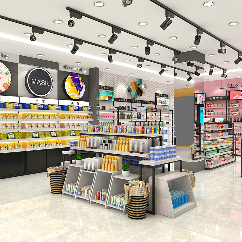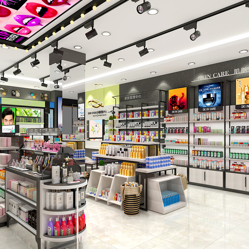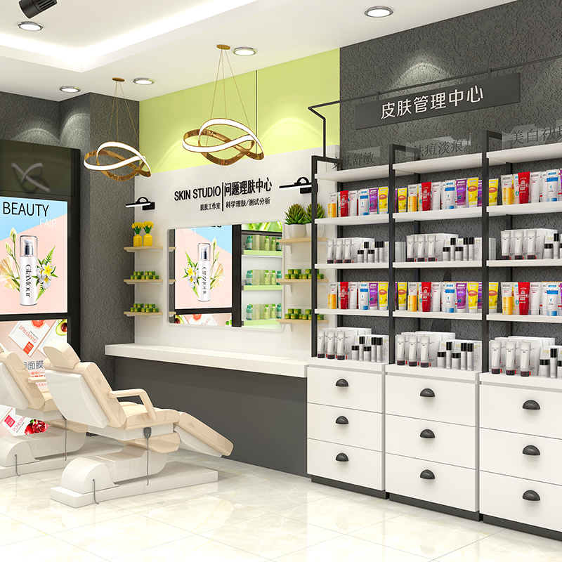 美妝店貨架精品現(xiàn)代護(hù)膚陳列柜商場彩妝專柜面膜展示柜雙面貨架子