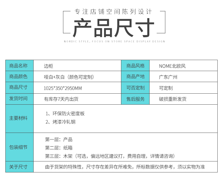 產(chǎn)品描述:極簡(jiǎn)北歐風(fēng),增加儲(chǔ)物量、進(jìn)店率。采用環(huán)保板材+穩(wěn)定鋼架結(jié)構(gòu),讓人眼前一亮的感覺。