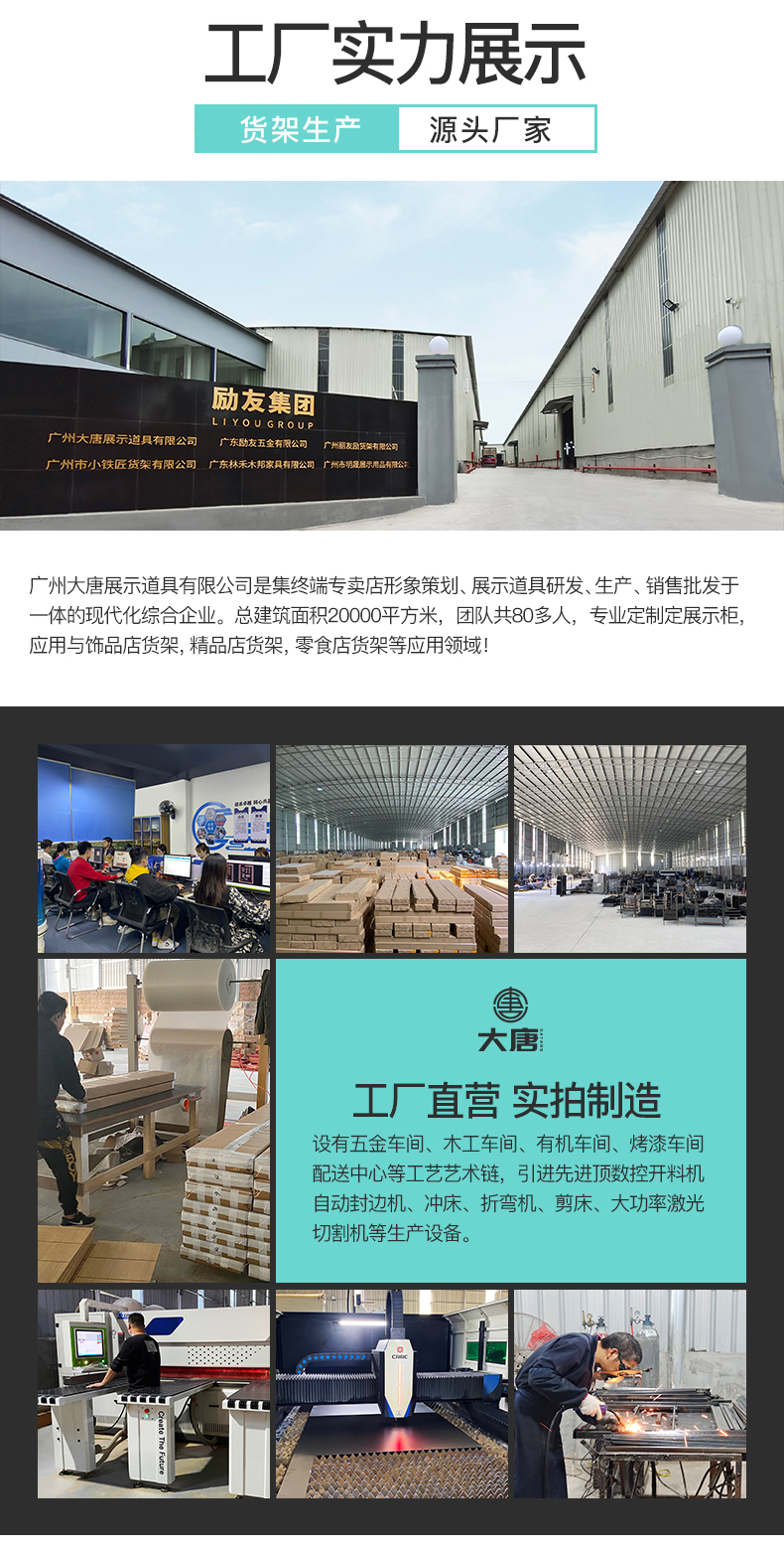 廣州大唐展示道具有限公司是一家專注三元店貨架定制生產廠家,主營:四層流水臺、四層流水臺定制、四層流水臺批發等,集終端專賣店形象策劃于一體的現代化綜合企業,貨架定制就找大唐展示,咨詢熱線:18818398080/李先生。