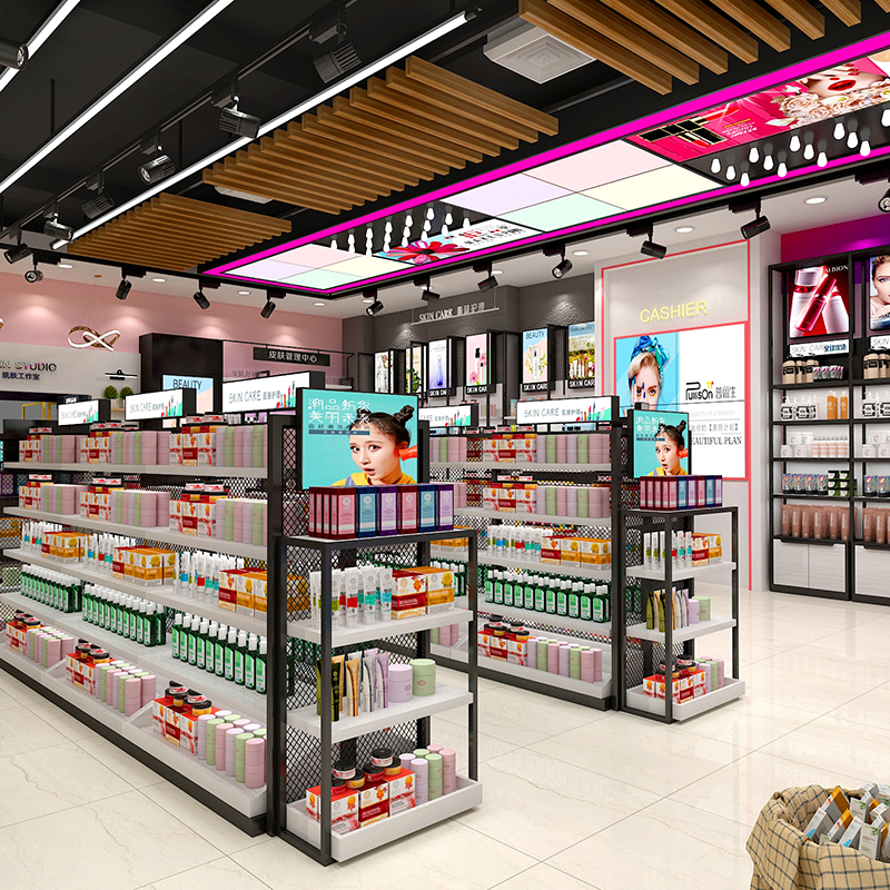 -> 精品化妝品陳列柜美妝展示架多層陳列架